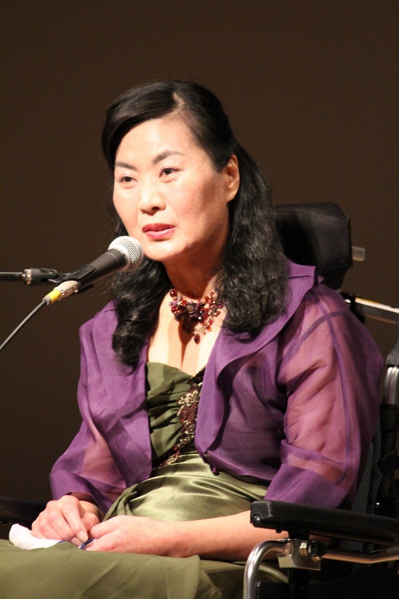 Then the Great East Japan earthquake struck us. Thousands of children were killed by the ensuing tsunami and I felt so guilty that I, who have to trouble people to help me do the most basic things all the time, am still alive and those children died. Then I thought that there must be a reason that I am still alive. Thus I decided to do the things I can do now and live in the moment, and that is the reason for my presence before you here today.